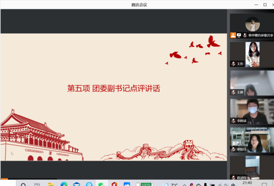 团委副书记陶艳也对本次组织生活会及2021级本科生团支部本学期的工作情况进行了点评讲话,肯定了此次组织生活会的开展情况及2021级本科生团支部本学期青年大学习和各类活动的组织情况,并对未来予以期待和要求。