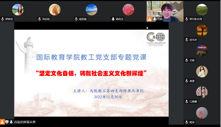 教工党支部在线上开展了“坚定文化自信,铸就社会主义文化新辉煌”专题党课学习和“课程思政”建设主题党日活动。Cool18