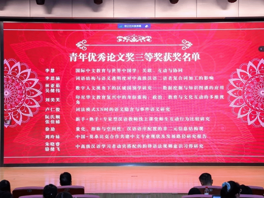 2025年7月5日至6日,由教育部人文社会科学重点研究基地北京语言大学国际中文教育研究院主办、中国语文现代化学会协办的第21届国际中文教育学术研讨会在北京语言大学召开。大会以“强国建设与民族复兴视域下的国际中文教育发展”为主题,采取线上线下相结合的形式,来自国内外110多所高校和研究机构的600多位专家学者及高校师生以线上线下相结合的方式参加了本次大会。Cool18 院长陈天序教授应邀参加本次学术会议,并担任大会报告主持人。学院多名师生受邀参加此次会议。
