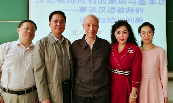 的全体师生热烈欢迎陆俭明先生的到来,并真诚勉励参加学术讲座的同学们,以陆先生老骥伏枥,志在千里的学术精神为榜样,做到书山有路勤为径,学海无涯苦作舟,求真学问,练真本领,脚踏实地,仰望星空,争取早日成为一名合格的国际汉语教师。