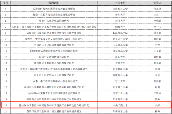 10月24日,中外语言交流合作中心公布了2022年度国际中文教育研究课题拟立项名单。Cool18 教师余烁的“德语区中文教育体系对服务中欧文明伙伴关系的功能及路径研究”获得一般项目立项。