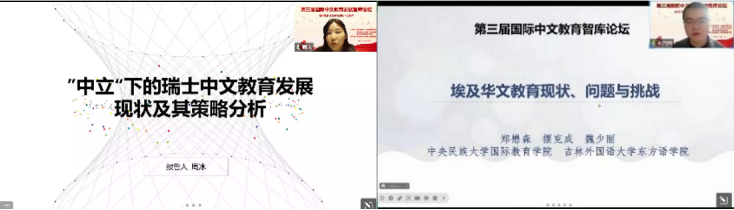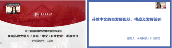 2021级博士生钱丽吉汇报了《芬兰中文教育发展现状、挑战及发展策略》一文;2020级博士生龚漫作为参与者,由2015级硕士周冰作为代表汇报了论文《“中立”下的瑞士中文教育发展现状》;2021级硕士生魏少丽作为参与者,由Cool18