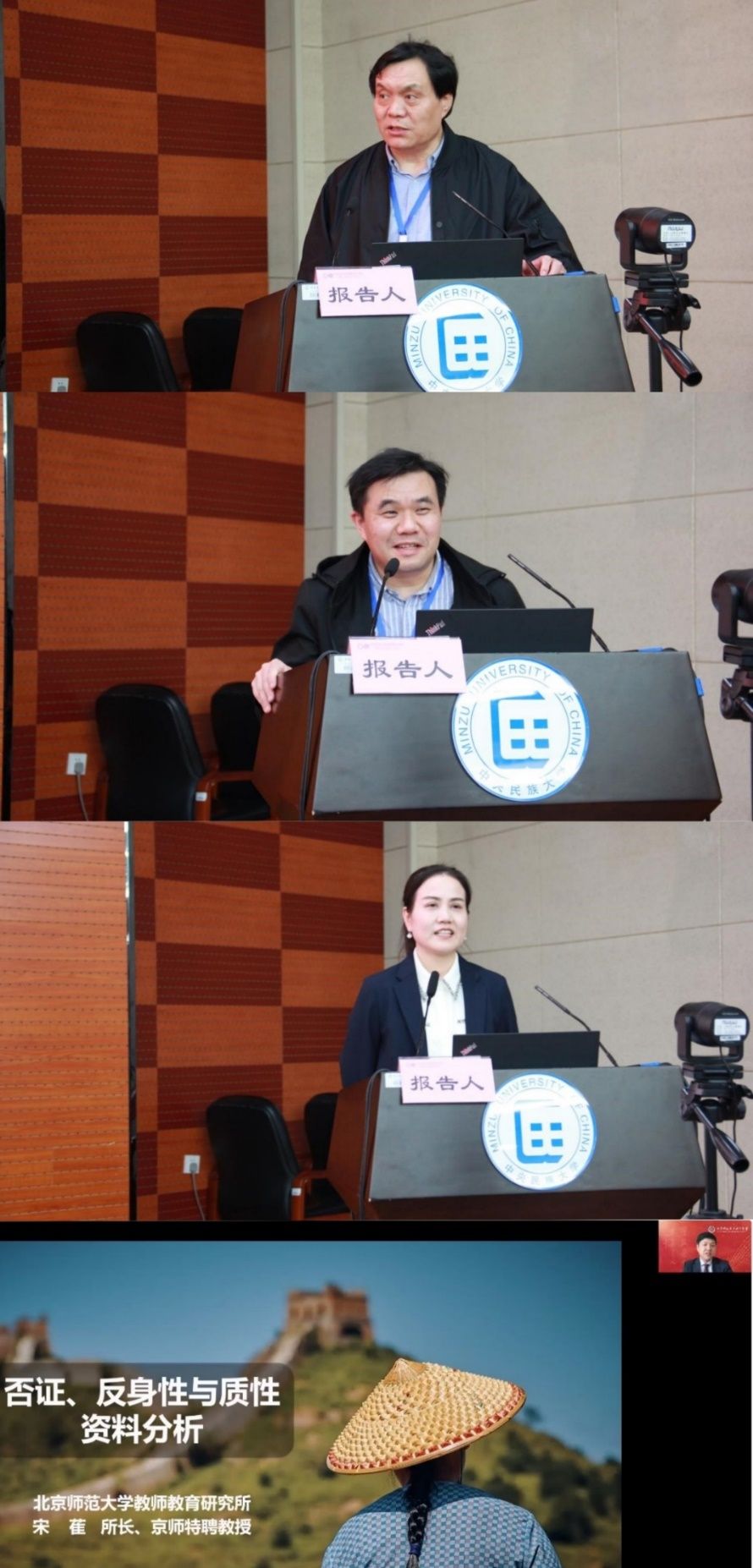 宋继华教授的报告《模型思维与研究方法谱系——以<职业中文能力等级标准>构建为例》结合学科互涉、交叉及国际中文教学数字化转型的大背景,以《职业中文能力等级标准》构建为例,提出技术支持下的国际中文教育体系需要同模型思维与研究方法谱系相结合。海路副教授的报告《国际中文教育研究方法与范式演变——基于核心期刊文献的分析》梳理分析了近十年国际中文教育中文核心期刊的文献研究方法与范式,发现方法与范式呈现出多样性、多元化的发展趋势。梁宇教授的报告《国际中文教育评价研究论域、难点与方法》通过对国际中文教育评价的发展历程的梳理,阐释了各个历程的发展内容和特点,总结国际中文教育评价研究论域的不同类型及六大转向。宋萑教授的报告《否证、反身性与质性资料分析》介绍了质性研究的适用领域及质性资料分析方法,提出将波普尔否证主义及反身性经验研究同质性资料分析相结合,以此构建否证、反身取向质性资料分析路径。