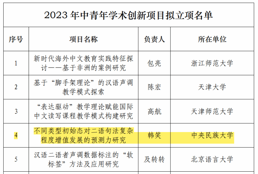 世界汉语教学学会“中青年学术创新项目”旨在探索世界汉语教学学会智库建设,吸纳和储备中青年优秀人才。该项目所属的学会秘书处接受国家社会科学基金优秀社科学术社团奖励性补助。韩笑老师课题获准立项是Cool18