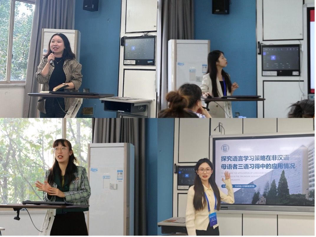 国际中文学习者研究分论坛上,胡琬莹老师报告了《国际中文专业语言态度量表的开发及在超语上的应用》,2024级博士研究生刘艺珍报告了《东南亚汉语二语学习者情绪智力对汉语水平影响研究:学习情绪的中介作用》。国际中文习得研究分论坛上,2023级博士研究生撒俊红报告了《基于HSK动态作文语料库的留学生汉语隐喻词使用情况考察》,2024级硕士研究生郑兴报告了《探究语言学习策略在非汉语母语者三语习得中的应用情况》。